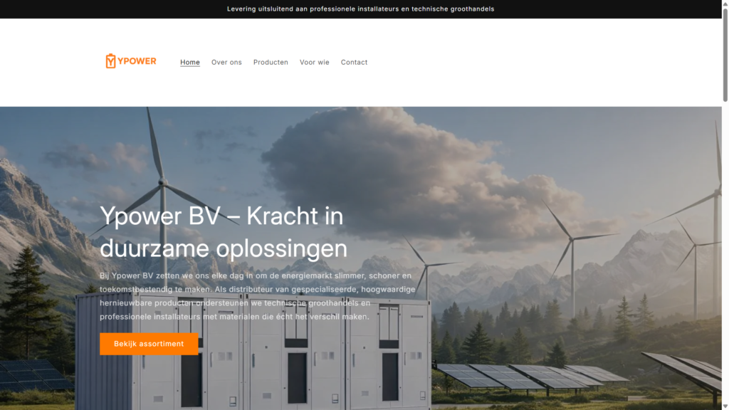 Voor Ypower heb ik een zakelijke website gebouwd met Shopify,